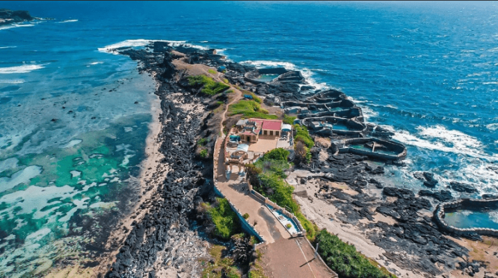 Ngoài ra, những tảng đá đen được thiên nhiên bào mòn thành những hình thể lạ mắt, đẹp như một bức tranh vẽ.