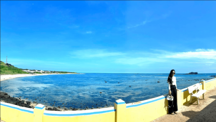 Tại đây chỉ có biển và gió, không có gì che khuất tầm nhìn ra biển với vị trí ngay trên vách núi nên view biển cũng đẹp hút hồn. Không gian tĩnh lặng, biển cả mênh mông, làn gió bay ngang qua mặt mang theo hơi biển thấm vị mặn trên môi.